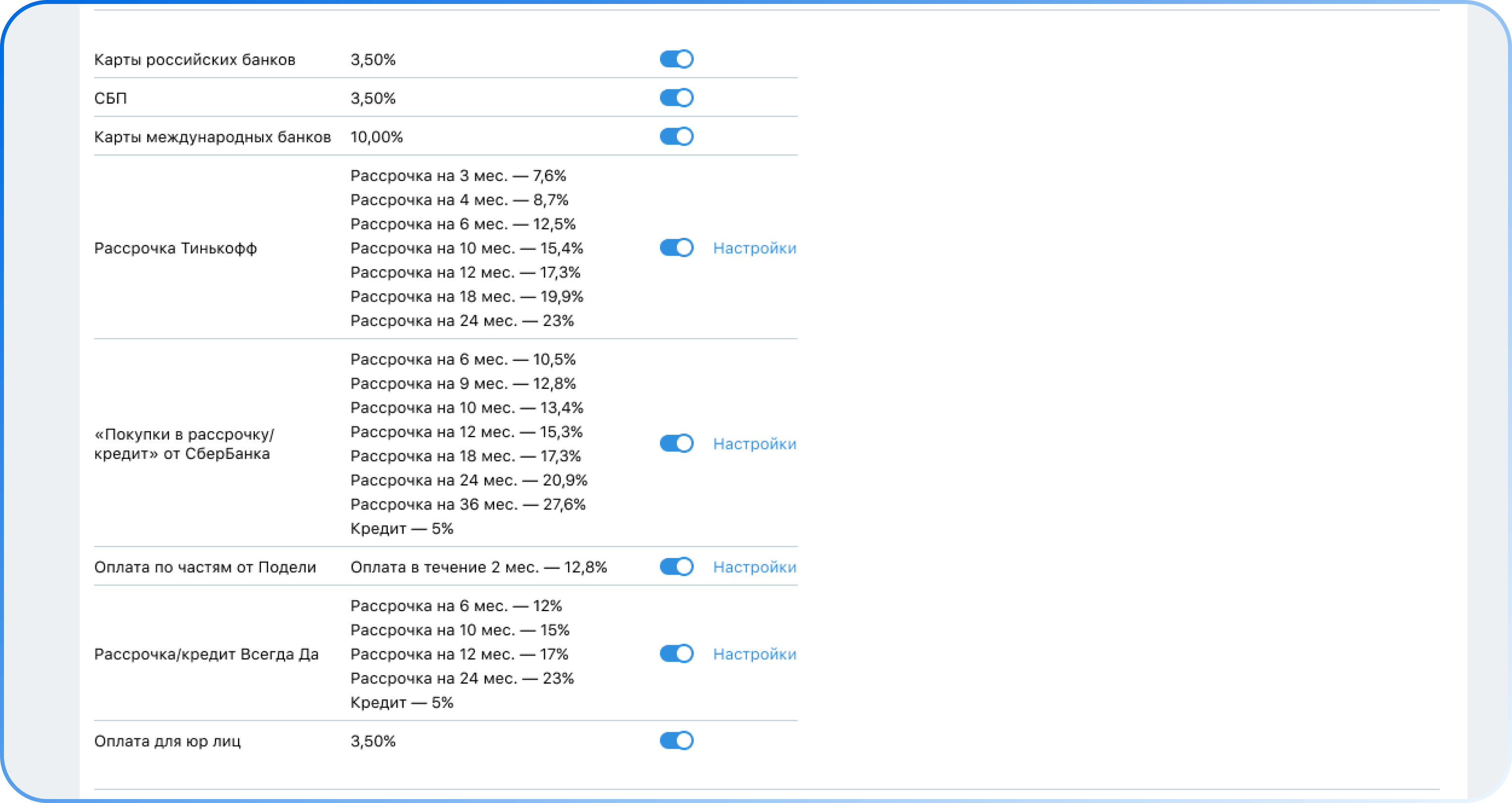 AT PAY - это прямо моя «выручалка». Внутри большое количество разных видов оплат. Клиенту предоставляется масса вариаций, в том числе и всевозможные рассрочки и оплата частями. Это прямо супер!